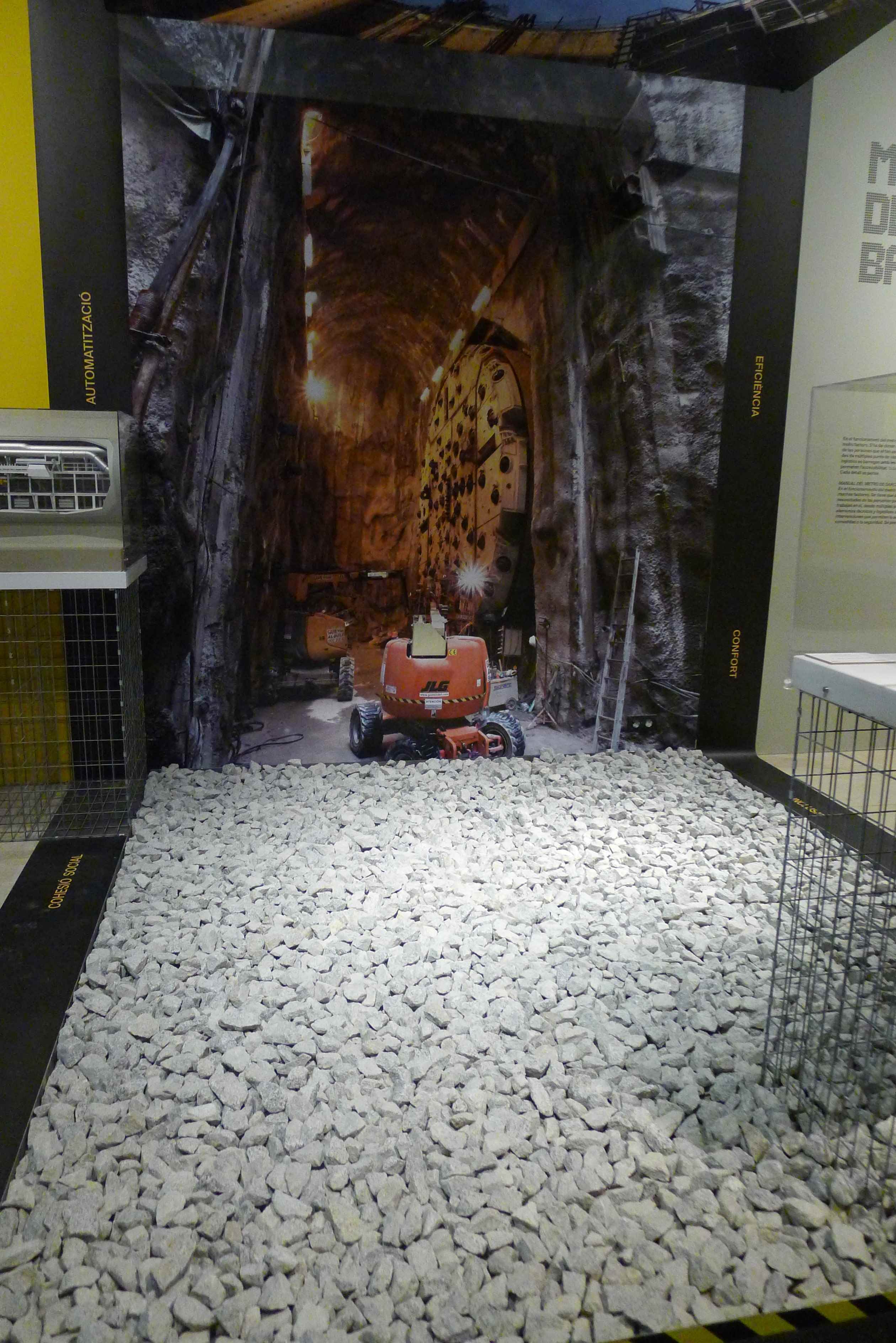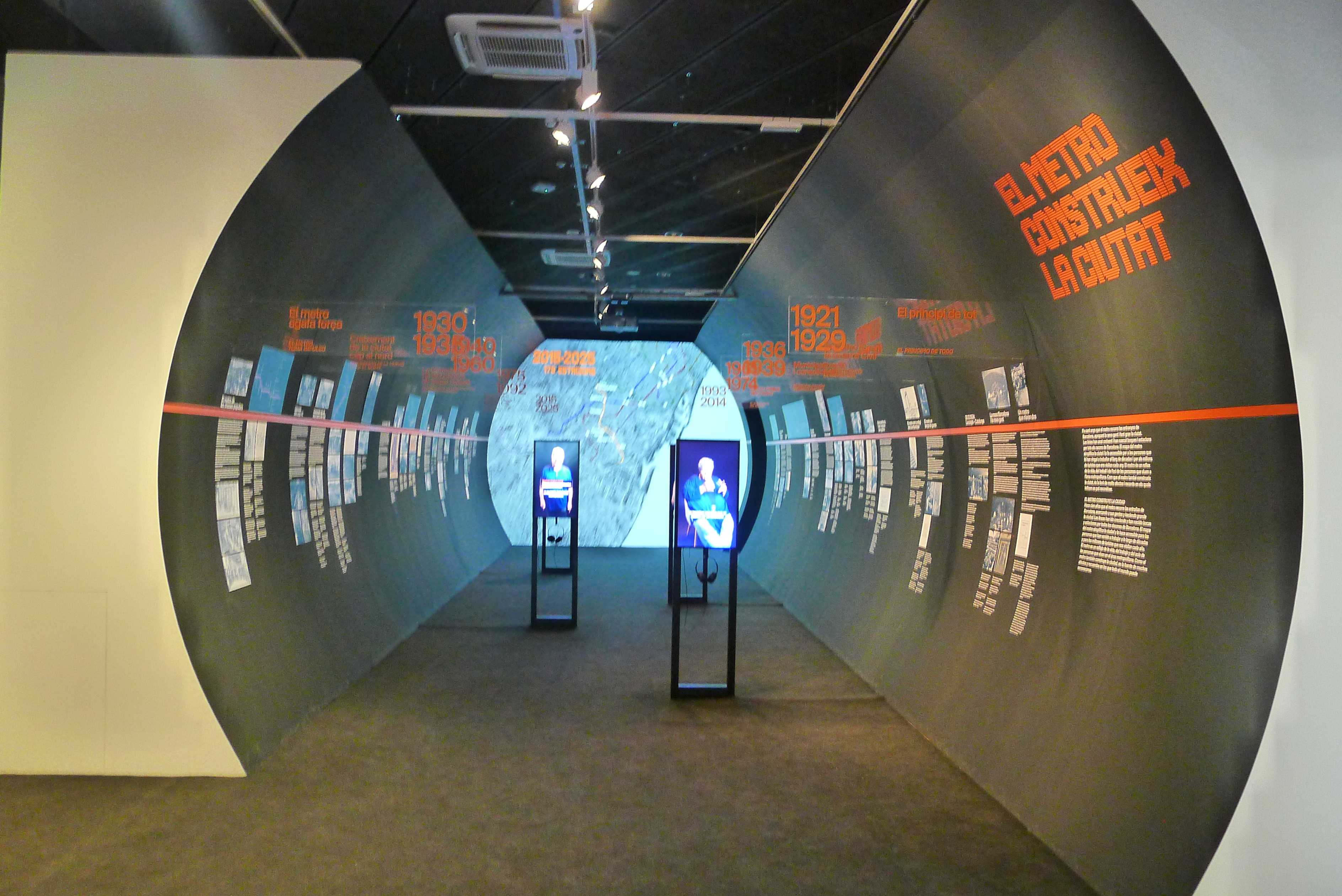 L’exposició que es pot veure al palau Robert està organitzada en quatre grans apartats, amb un disseny molt diferent en cadascuna. Comença amb una prèvia sobre els transports a finals del segle XIX i com imaginaven el futur les persones de l’època, amb dibuixos humorístics publicats a la premsa del moment, tant d’aquí com de l’estranger. També s’explica com va anar arribant el metro a diferents ciutats d’arreu del món. El segon gran apartat està dissenyat com si fos un túnel del metro i s’hi explica la història del metro barceloní mitjançant una cronologia amb textos explicatius i imatges que ho il·lustren i amb petits audiovisuals de persones que expliquen les seves vivències. El tercer àmbit és com un vagó de metro dels més moderns. En un cantó hi ha plafons tàctils amb preguntes amb l’objectiu que els visitants puguin posar a prova els seus coneixements sobre la xarxa de metro a l’altra banda, hi ha un vídeo que es pot veure a través de les finestres simula un recorregut del metro. La darrera part explica com es construeix avui dia un nou traçat de metro: com és una tuneladora, com funciona… L’exposició acaba amb una mostra de llibres i pel·lícules on el metro hi surt com a protagonista o com a actor secundari.