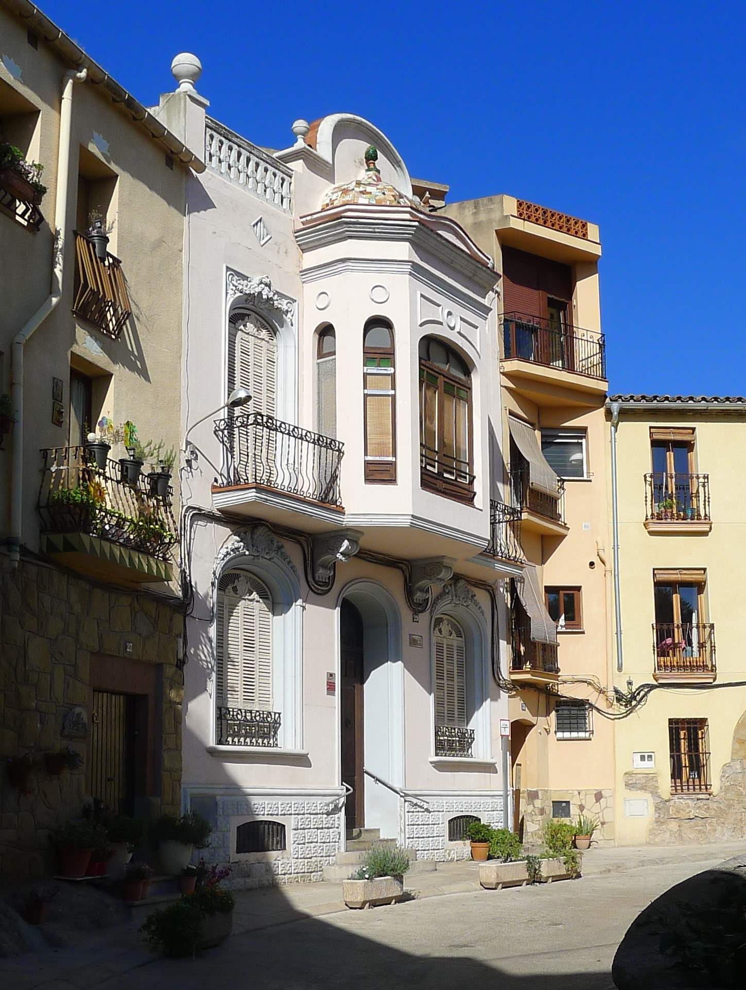 Veiem com era la vila a la dècada de 1910, segons el retrat que en va fer Cels Gomis al volum dedicat a la província de Barcelona de la Geografia General de Catalunya. Diu Gomis: “Vila de 451 cases, ab 1.959 habitants de fet y 1.692 de dret, a 14 kilòmetres al SE del cap de partit y a 212 metres d’altitut”. Hi afegeix que: “Té segregada la quadra de Vilamarrichs, la fàbrica y cases de Can Gomis y lo Monestir de Montserrat, reunint entre tot, 491 cases ab 2.332 habitants de fet y 2.331 de dret”.
