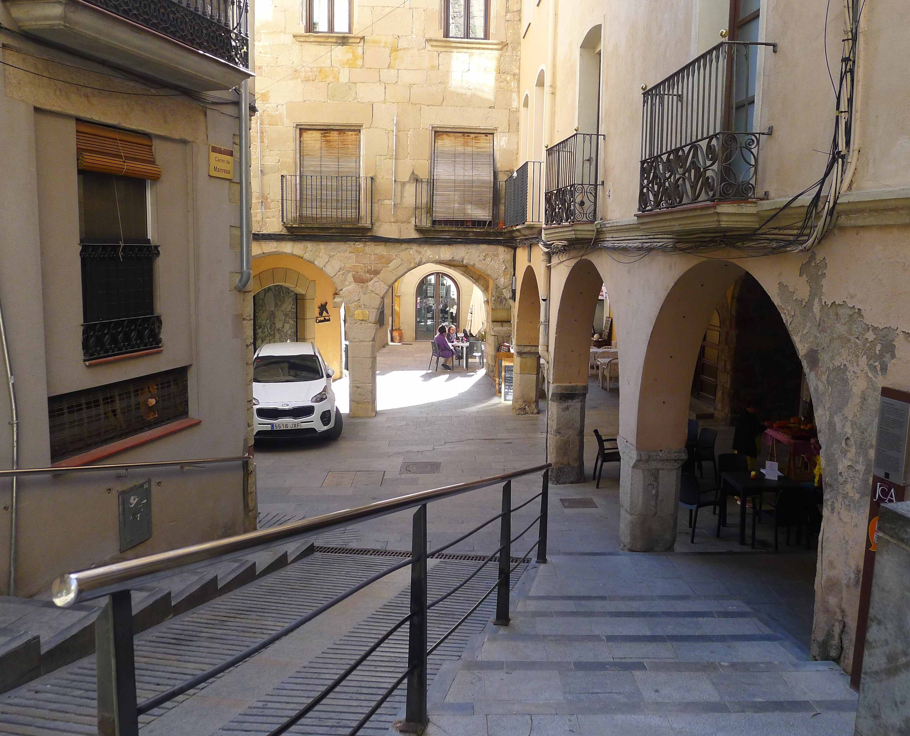 La plaça del Bo Bo, és una mena de quadrat irregular, no gaire gran, amb porxos, que funciona com a distribuïdor dels carrers del Pont, de Sant Joan, de Manresa i de Sant Pere. El seu nom és degut a un ball votiu que se celebra cada any per Sant Sebastià, el dia 20 de gener.