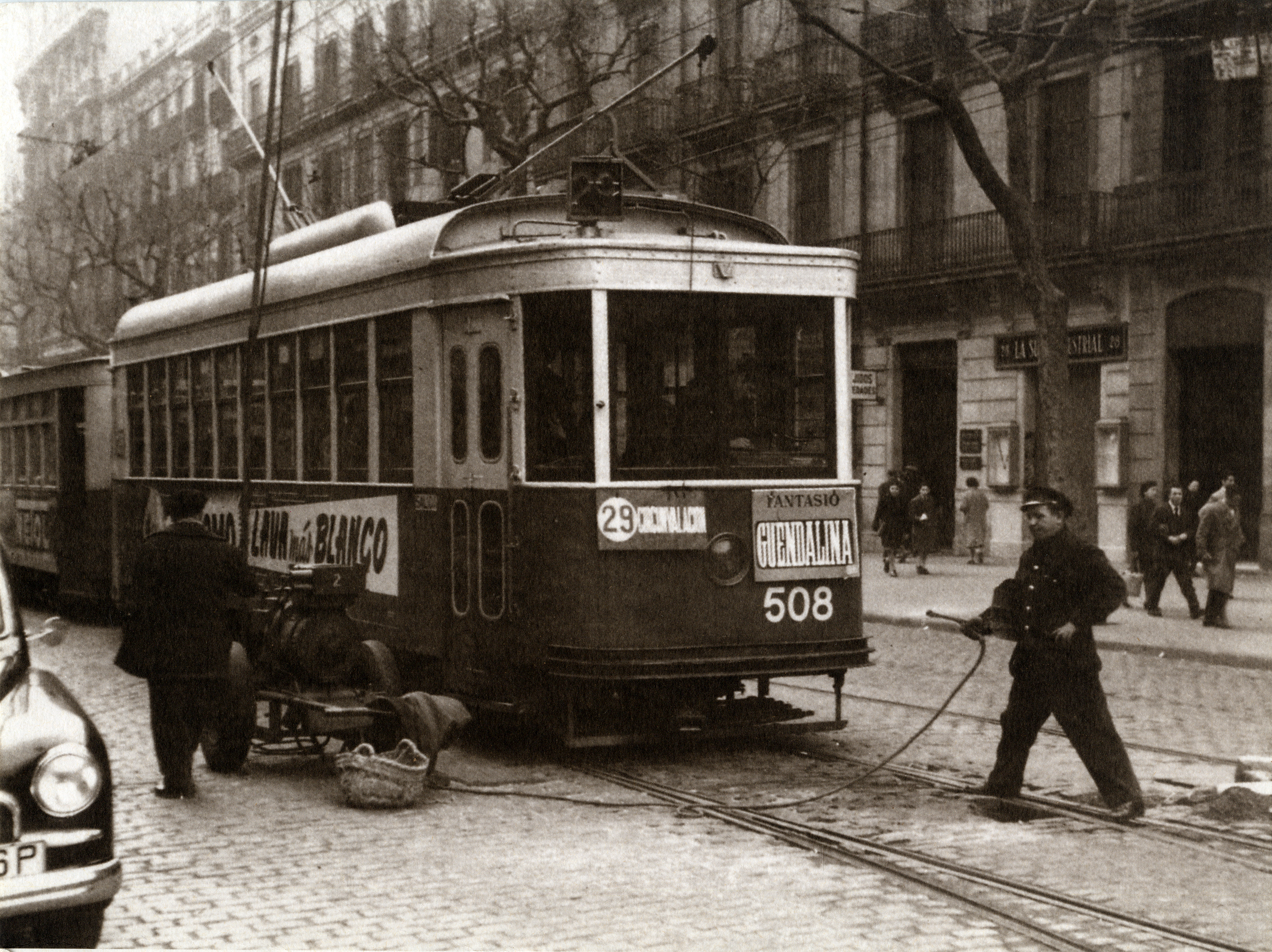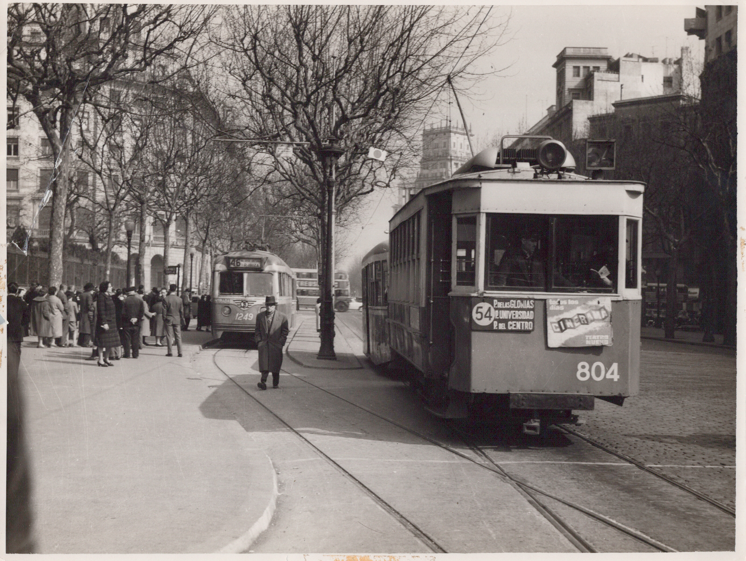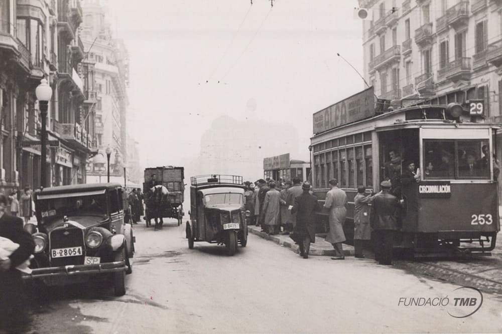 A nivell de transports, la Barcelona d’aquella meitat de segle XX comptava només amb dues línies de metro, el Gran Metro, una petita part de l’actual línia III, i el Transversal, una petita part de l’actual línia I. Hi havia unes poques línies de bus i de troleibús i el tren de Sarrià, que anava des de la plaça de Catalunya cap a Sant Gervasi i Sarrià. Així doncs, la gran majoria de persones depenien del tramvia per moure’s per la ciutat, un tramvia que depenia d’una empresa privada la Compañia de Tranvias de Barcelona.