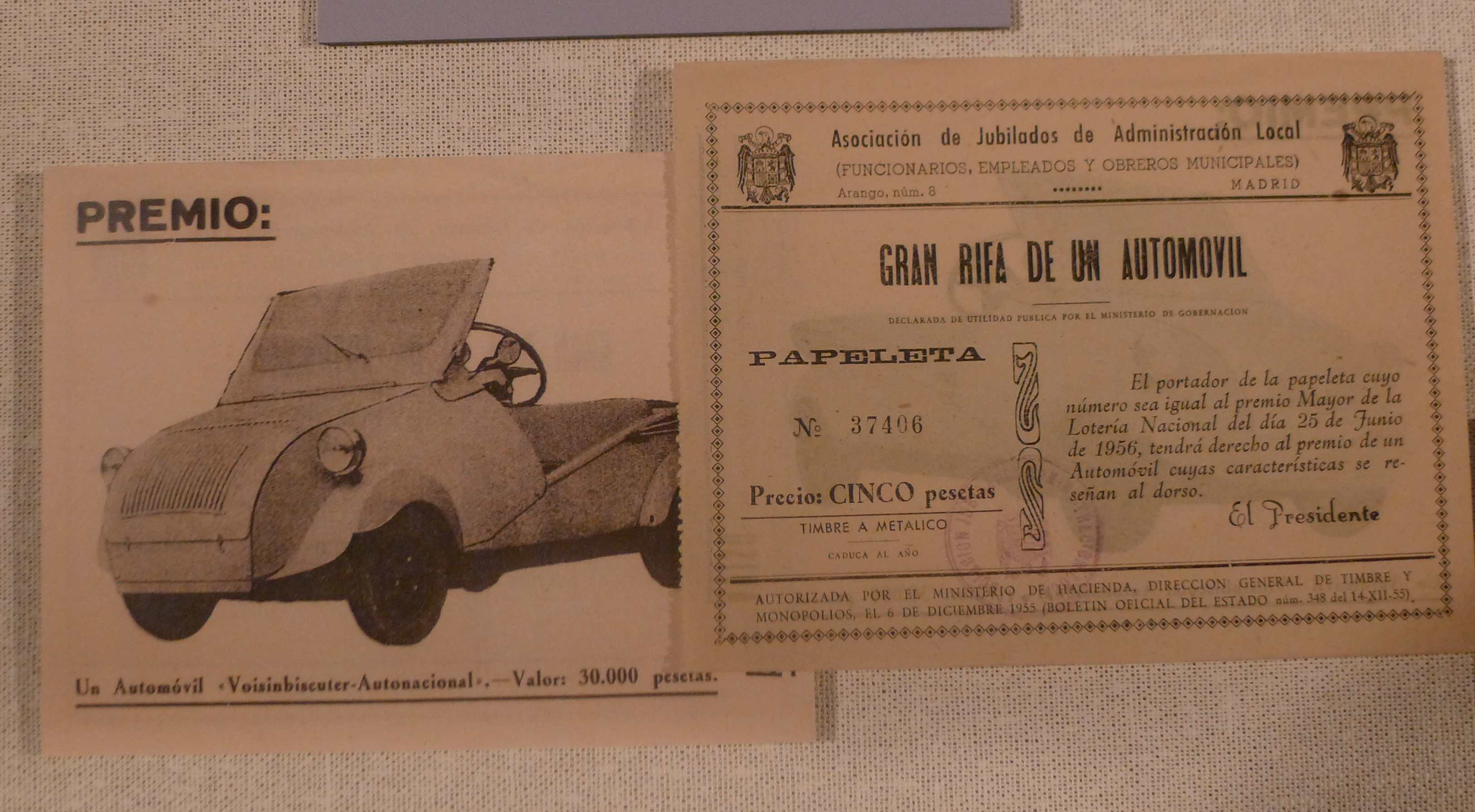 Un audiovisual ens mostra imatges de l’època amb vehicles circulant per la ciutat i una vitrina recull diversos objectes relacionats amb els microcotxes, com contes, butlletes del sorteig d’un biscuter o factures de compra d’aquests vehicles.